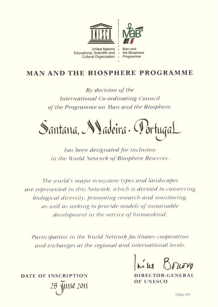 O concelho de Santana, na Madeira, viu reconhecido mundialmente a riqueza do seu património a 29 de junho de 2011 aquando da sua classificação pela UNESCO através do programa MAB que visa promover o desenvolvimento sustentável.